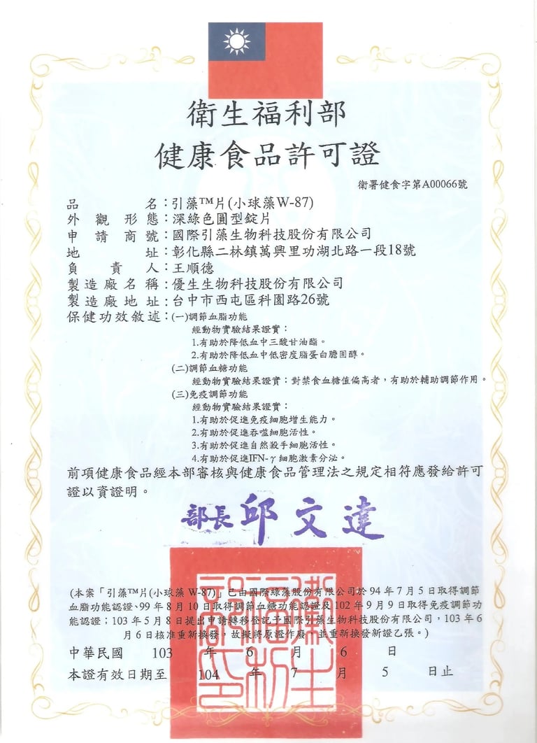 Crypto PPARs are the first algae product to receive a “Health Food” certification from the government of Taiwan, with therapeutic claims of reducing blood cholesterol.