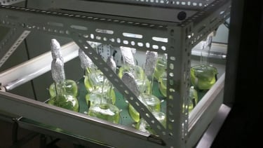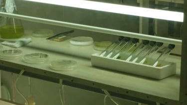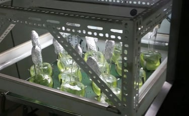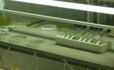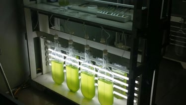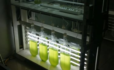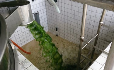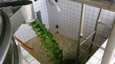 After 2 weeks, the Cryptomonadales solution is moved into a bigger pond. The PH is maintained at PH 6.8 - PH 7.2. When the OD of the solution concentration reaches 10, it is moved to a large pond. The PH (PH 6.8 - PH 7.2) and nutrients is adjusted and tested.